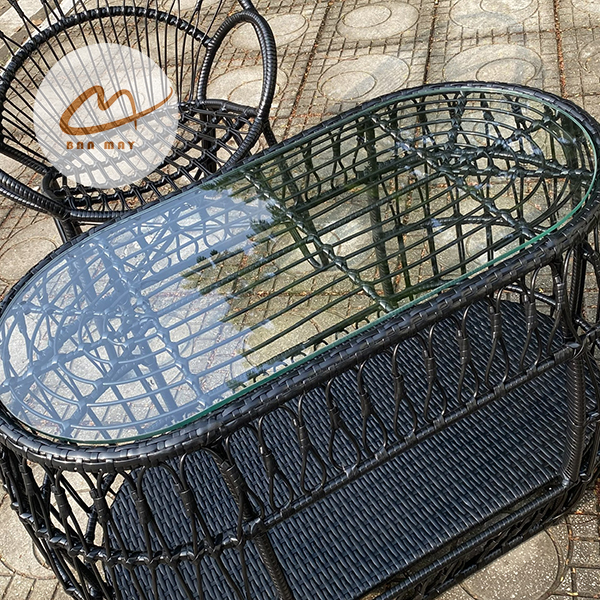 Chiếc bàn kích thước 90x40x65cm được thiết kế một hộc ngăn để đồ tiện lợi dưới mặt bàn kính, giúp bạn giữ cho không gian luôn gọn gàng. Khi kết hợp với bộ đệm nhung êm ái, bộ bàn ghế mây nhựa đuôi công mang lại một trải nghiệm thư giãn đẳng cấp, không thua kém các mẫu xích đu ban công nhỏ gọn nhưng đầy phong cách.