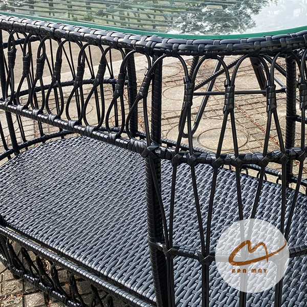 Chất liệu: Khung thép sơn tĩnh điện, nhựa nguyên sinh giả mây.