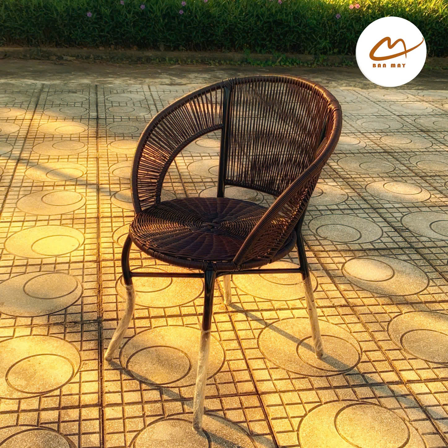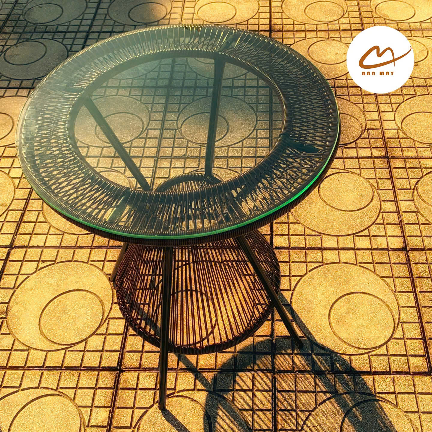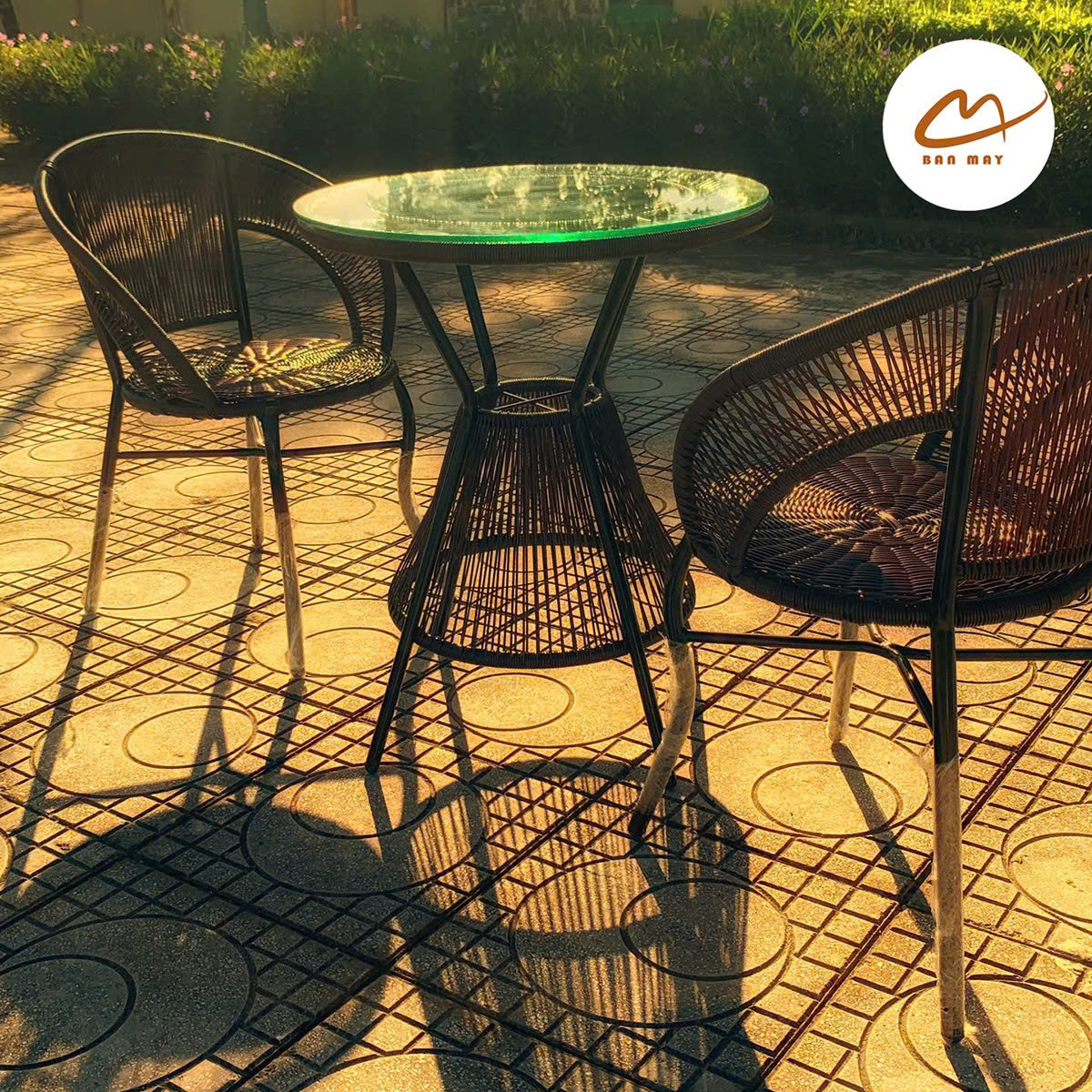 Bàn ghế ngoài trời, bàn ghế mây nhựa khung thép nội thất Bản Mây thiết kế dáng chân quỳ sang trọng, decor ban công sân vườn