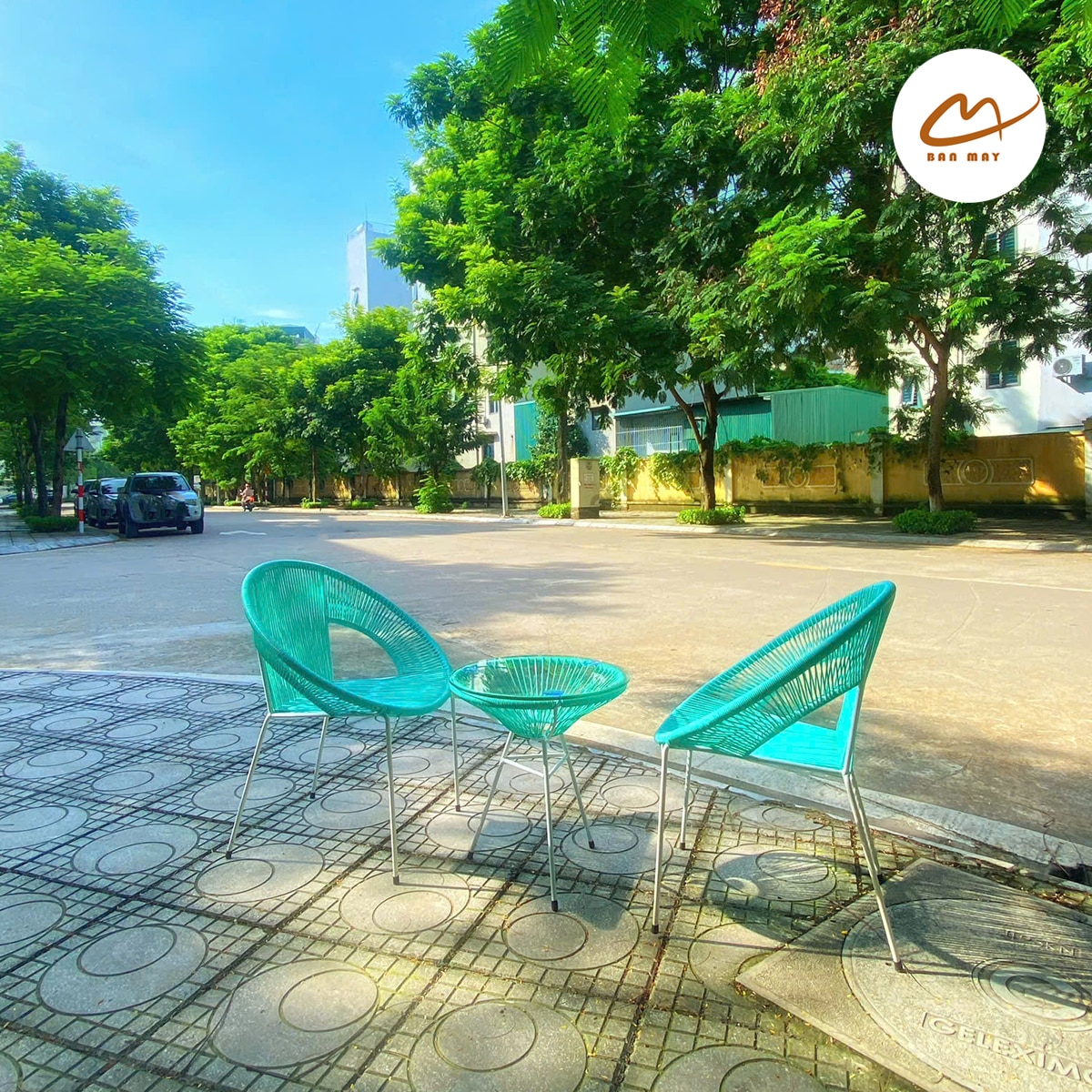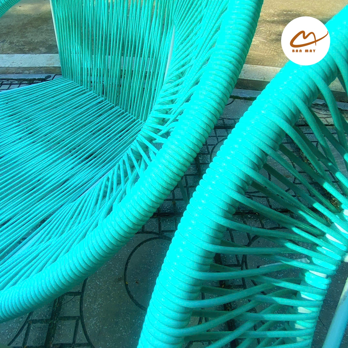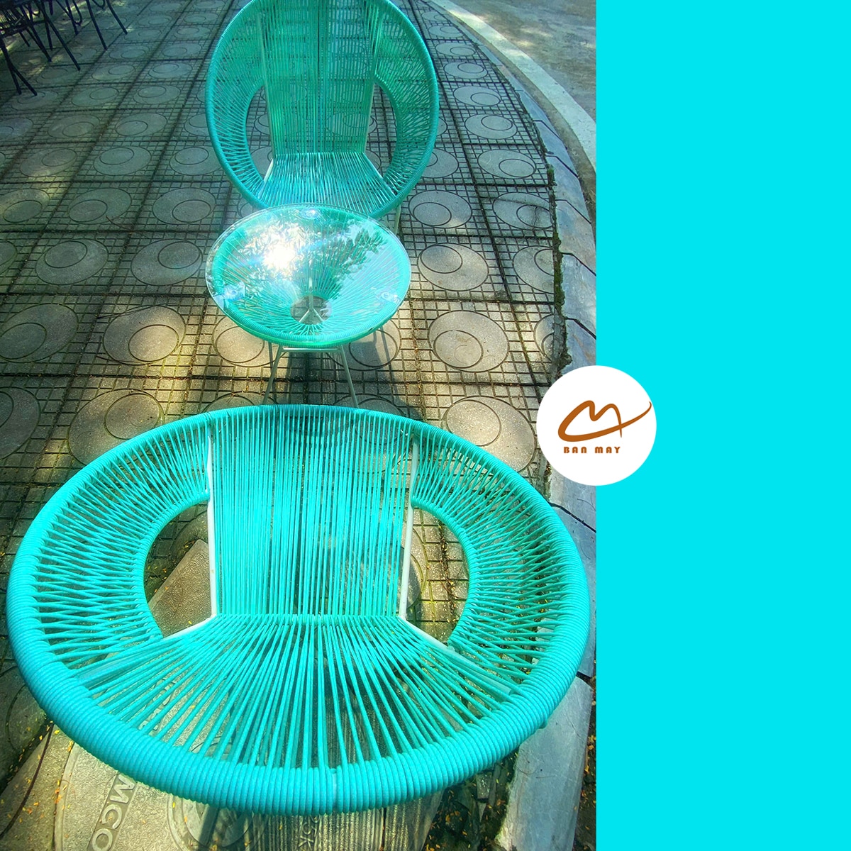 Bộ bàn ghế Acapulco dây văng sắc xanh hiện đại, trẻ trung, phù hợp cho quán cafe, sân vườn, không gian uống trà thư thái.