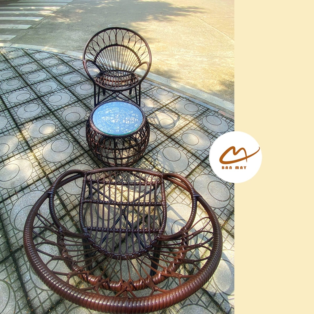 Bạn có thể đặt bộ bàn ghế đuôi công tại ban công, nơi có ánh sáng tự nhiên để thưởng thức tách trà nóng hoặc thư giãn sau những giờ làm việc căng thẳng. Màu sắc nâu socola cùng với thiết kế độc đáo chắc chắn sẽ tạo ra một góc nhỏ xinh đẹp, yên bình ngay tại không gian sống của bạn.