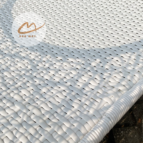 Bàn ghế mây nhựa với kỹ thuật đan rối dài tạo bề mặt mềm và có chiều sâu