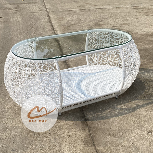 - Chất liệu bàn: khung thép sơn tĩnh điện, nhựa nguyên sinh giả mây