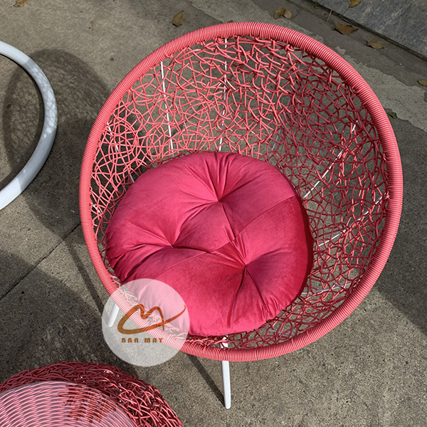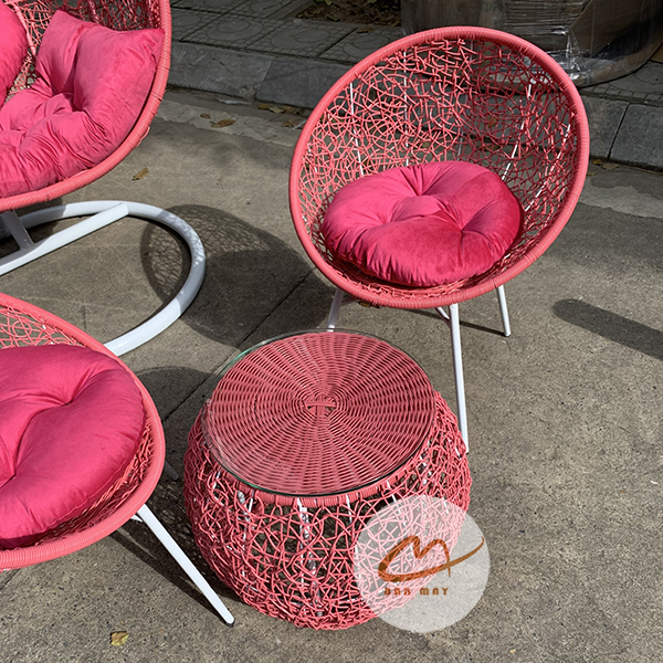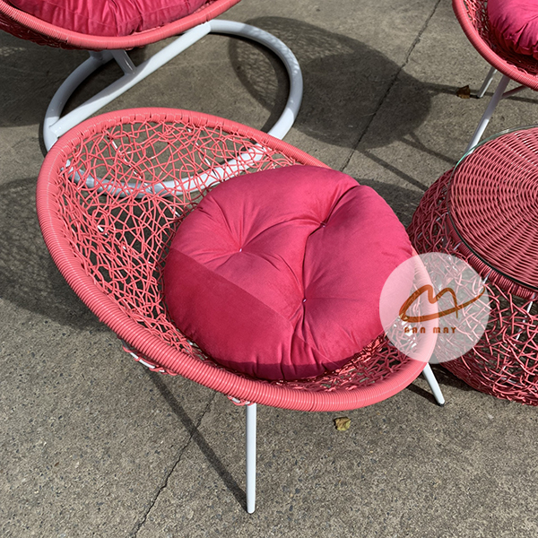 Điểm cộng tuyệt vời cho khách hàng khi mua sắm tại xưởng Bản Mây chính là khả năng tùy biến màu sắc không giới hạn. Từ những gam màu trung tính, thanh lịch như khung đen đan dây xanh rêu phối đệm trắng, cho đến những bản phối màu rực rỡ bùng nổ thị giác như khung trắng đan dây hồng cánh sen đi kèm gối ôm hình trái tim xanh rêu. Tất cả màu khung, màu lồng và màu đệm của bộ bàn ghế ban công đều có thể cá nhân hóa theo đúng gu thẩm mỹ riêng của gia chủ.