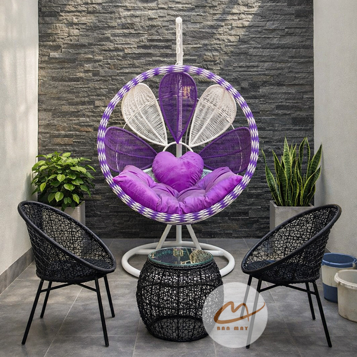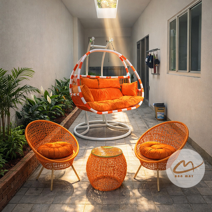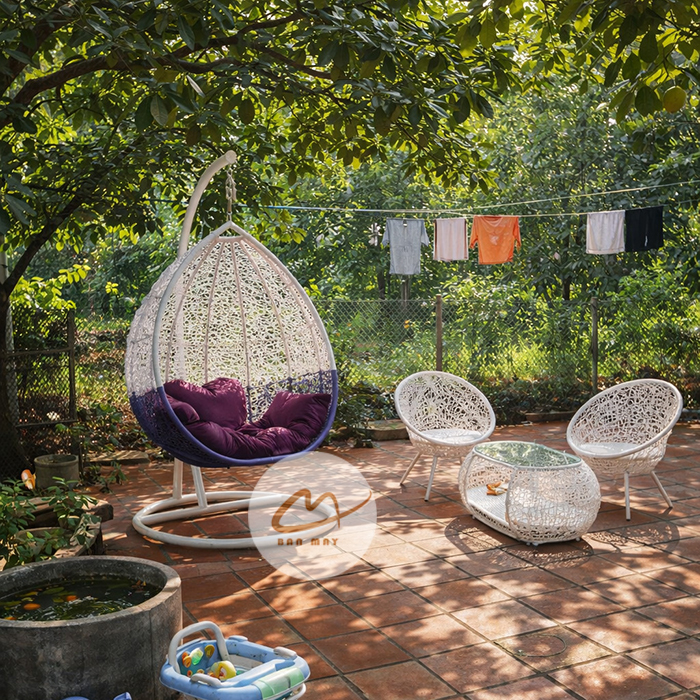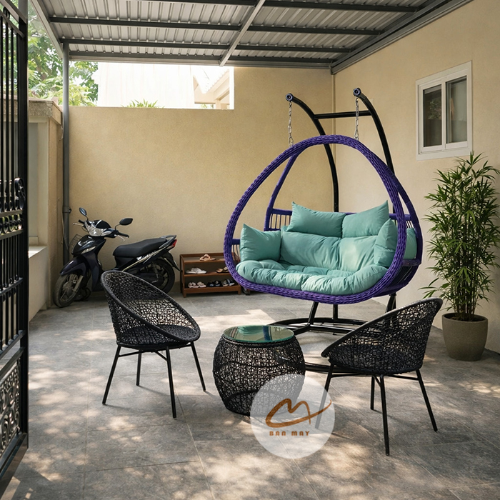 Bộ xích đu bàn ghế ban công, sân vườn, nội thất mây nhựa ngoài trời ngồi thư giãn, decor trang trí nhà cửa
