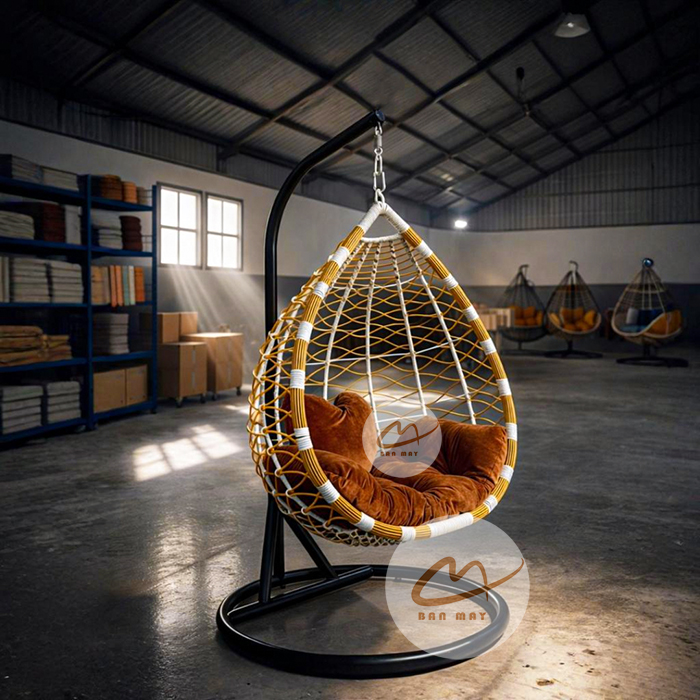 Mẫu xích đu mây nhựa giọt nước cần đơn là giải pháp cân bằng giữa diện tích và công năng, đặc biệt phù hợp với không gian nhỏ nhưng vẫn mong muốn có chỗ ngồi cho hai người thư giãn. Có thể tham khảo thêm xích đu phượng hoàng đơn để lựa chọn màu sắc và kiểu dáng phù hợp với từng không gian sống.