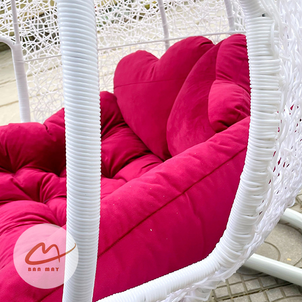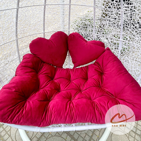 Không gian lồng rộng 1m3 cho phép 2 người ngồi thoải mái. Khi chỉ sử dụng một người, phần còn lại có thể đặt thêm gối tựa hoặc co chân thư giãn. Đệm nhung cao cấp 2 lớp nhồi 100% bông hạt trắng mang lại độ đàn hồi tốt và cảm giác êm ái. Màu đệm có thể tùy chỉnh để tạo điểm nhấn tương phản hoặc đồng bộ với màu lồng. Dây xích chịu tải lớn có thể điều chỉnh độ cao, giúp căn chỉnh vị trí lồng theo từng không gian.