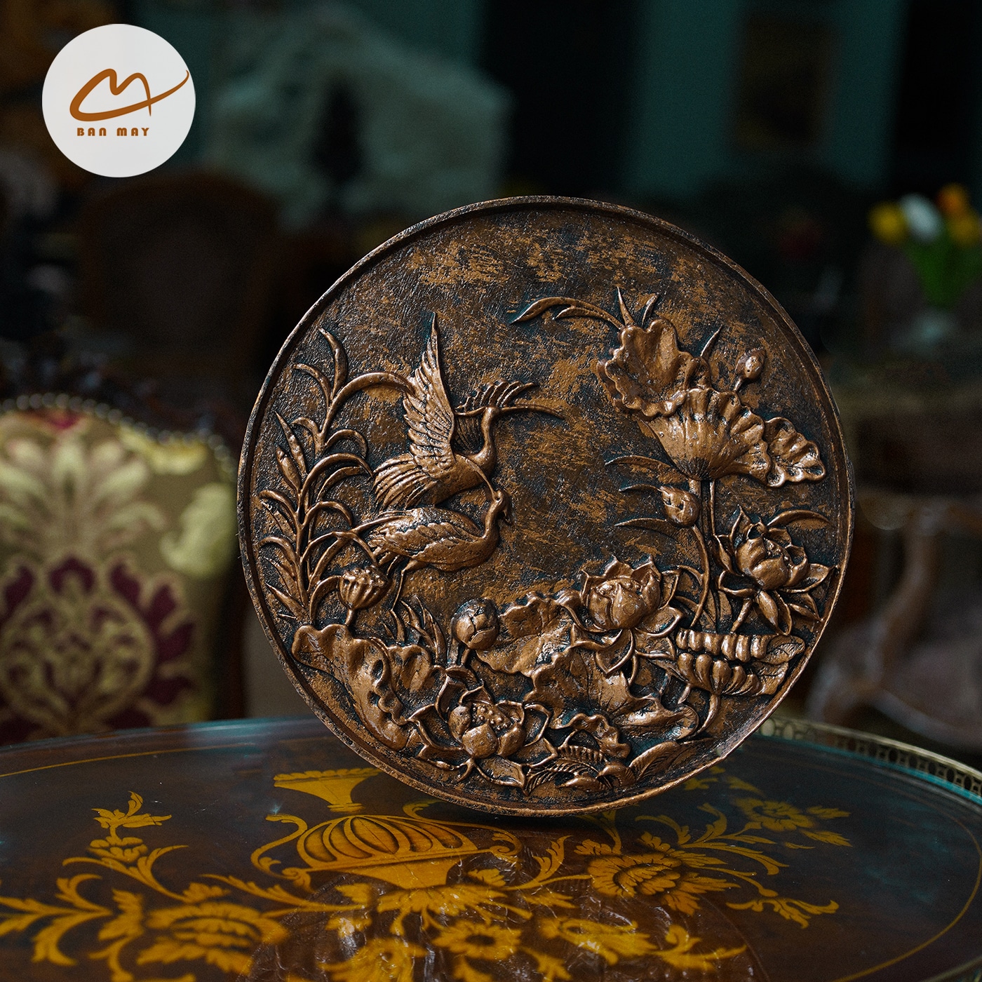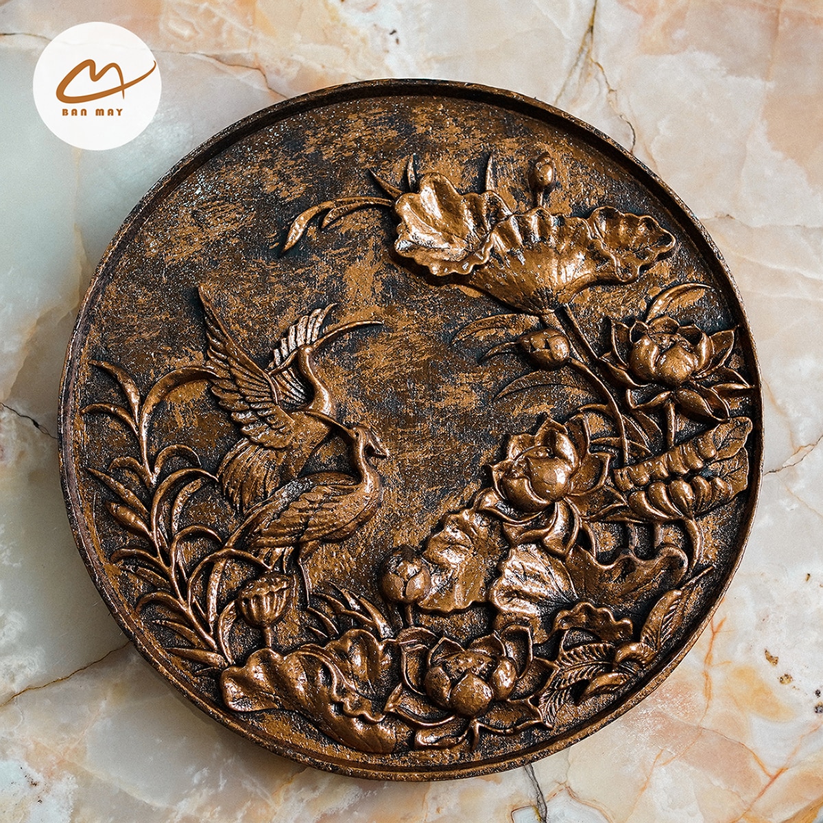 Tranh Bạch Hạc Liên Hoa màu đồng – sự kết hợp hoàn hảo giữa hình tượng hạc thanh cao và đóa sen thuần khiết, mang đến vẻ đẹp trang nhã, ý nghĩa phong thủy sâu sắc cho không gian sống.