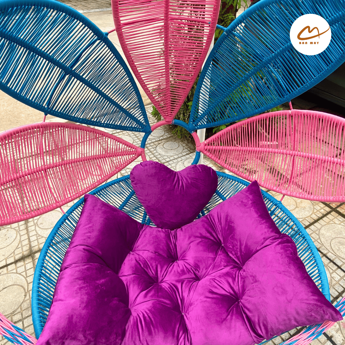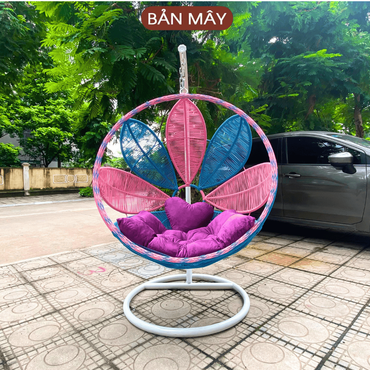 Xích đu bầu dục mix đen trắng đệm hồng