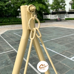 Điểm nổi bật nhất của chiếc xích đu này chính là thiết kế khung cần hình chữ A mang lại độ ổn định tuyệt đối. Cấu trúc tam giác tạo sự cân bằng hoàn hảo, chống lật đổ hiệu quả ngay cả khi có nhiều người sử dụng cùng lúc. Thiết kế khoa học này không chỉ giúp phân tán lực tác động đều khắp khung mà còn tiết kiệm diện tích, chiếm ít không gian nhưng vẫn đảm bảo tính thẩm mỹ và công năng vượt trội.
