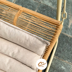 Khác với các mẫu xích đu sân thượng thông thường có thiết kế lồng ôm trọn, xích đu Bản Mây mang đến không gian ngồi thoáng đãng và rộng rãi. Ghế có thể chứa tới 3 người lớn ngồi thoải mái, tạo ra không gian lý tưởng cho các buổi trò chuyện gia đình hay những phút giây thư giãn cùng bạn bè.