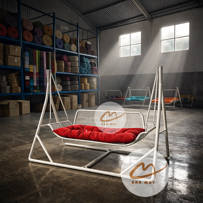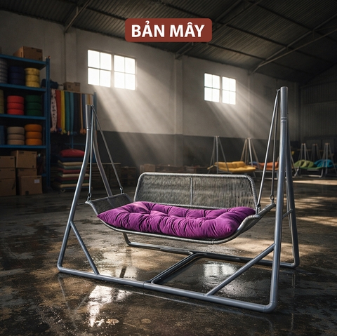 Không giống những mẫu ghế treo dạng lồng, thiết kế xích đu ngoài trời cánh én mang triết lý hoàn toàn khác: tối ưu sự ổn định và diện tích ngồi. Form ghế dài cùng khung chữ A giúp tạo ra một chiếc xích đu giống như sofa treo, phù hợp cho nhiều người sử dụng cùng lúc. Với kích thước lớn và kết cấu chắc chắn, mẫu xích đu này thường được đặt ở sân vườn, hiên nhà hoặc khu vực thư giãn ngoài trời.