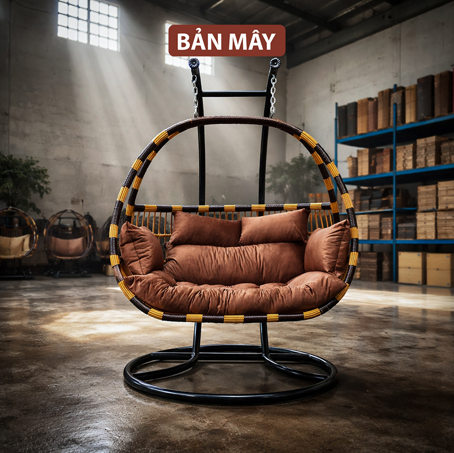Trong ngôn ngữ thiết kế nội thất, sự kết hợp giữa Đen và Vàng mây luôn đại diện cho vẻ đẹp vượt thời gian, vừa mang hơi thở hiện đại, vừa giữ được nét mộc mạc tự nhiên. Mẫu xích đu đẹp phiên bản cần kép này được Bản Mây ra mắt nhằm đáp ứng những yêu cầu khắt khe nhất về cả tính thẩm mỹ lẫn độ bền, biến góc nghỉ ngơi của bạn thành một không gian nghệ thuật thực thụ.