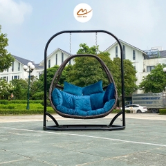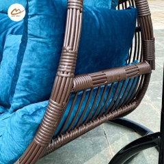 Chiếc xích đu đôi đệm xanh này là lựa chọn tuyệt vời để tạo ra góc thư giãn trong sân vườn, ban công hoặc phòng khách rộng rãi. Gia đình có thể cùng nhau tận hưởng những phút giây bình yên, đọc sách, trò chuyện hoặc đơn giản là ngắm nhìn thiên nhiên xung quanh.