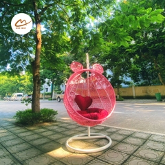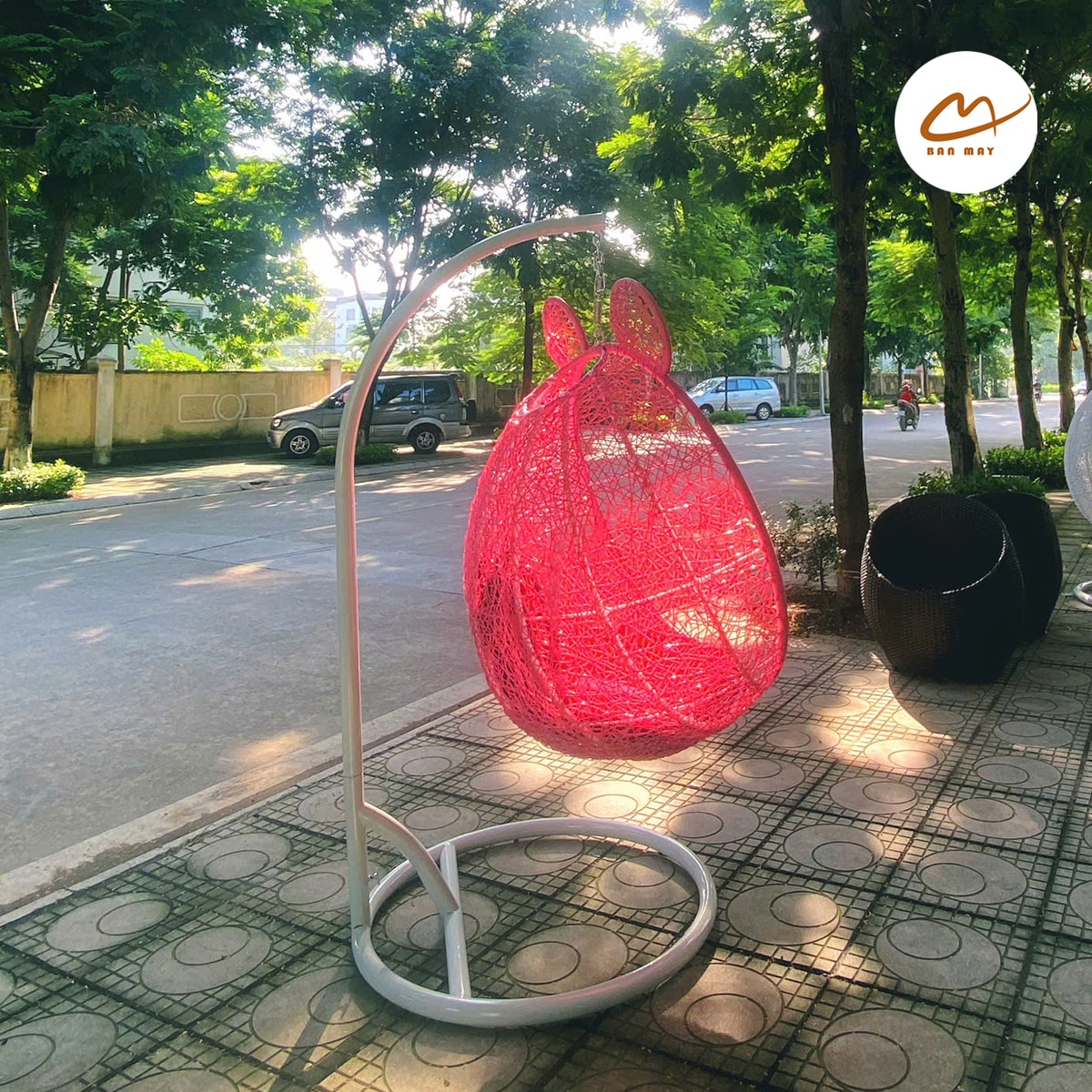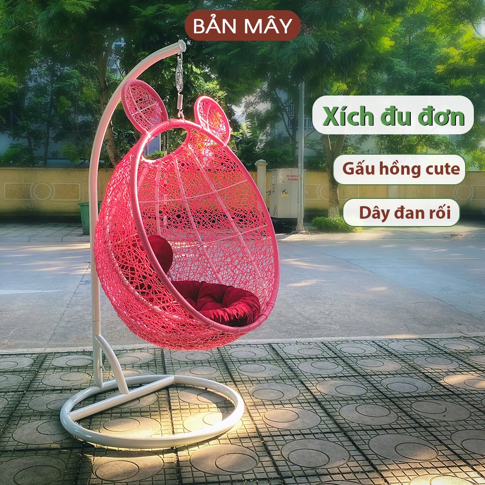 Xích đu đơn tai gấu đan rối màu hồng sẽ là món quà sinh nhật tuyệt vời cho các bé gái, phù hợp đặt phòng ngủ, phòng khách cho tới sân vườn, ban công.