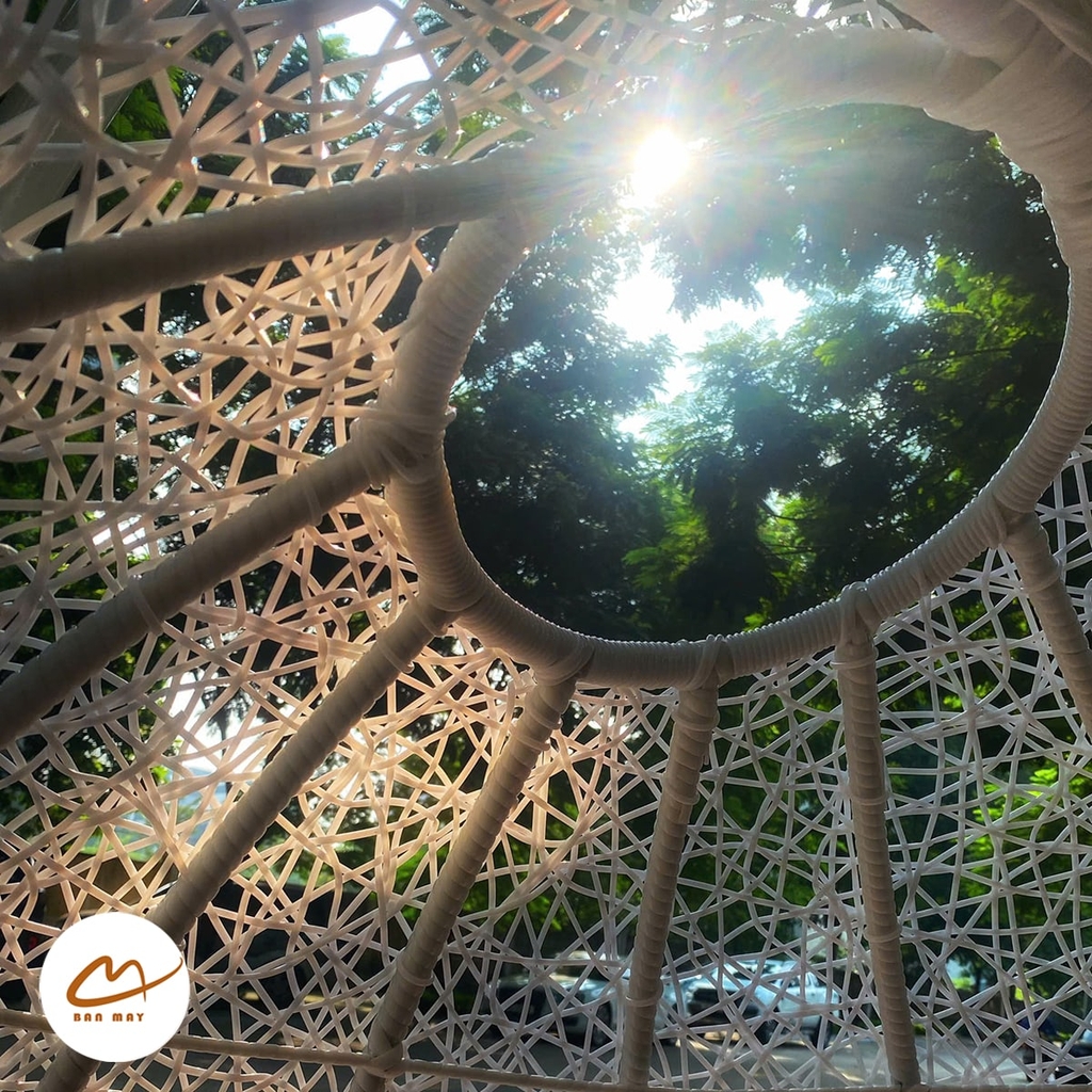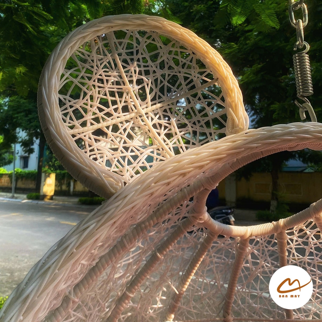 Khung thép sơn tĩnh điện - công nghệ sơn tiên tiến bậc nhất giúp nước sơn bám chắc lên bề mặt kim loại, hạn chế bong tróc khi va đập cũng như sự mài mòn của điều kiện môi trường. Lồng xích đu sử dụng nhựa nguyên sinh bọc ngoài đan giả mây, kết hợp đan rối để tạo nên họa tiết độc đáo, mới lạ.