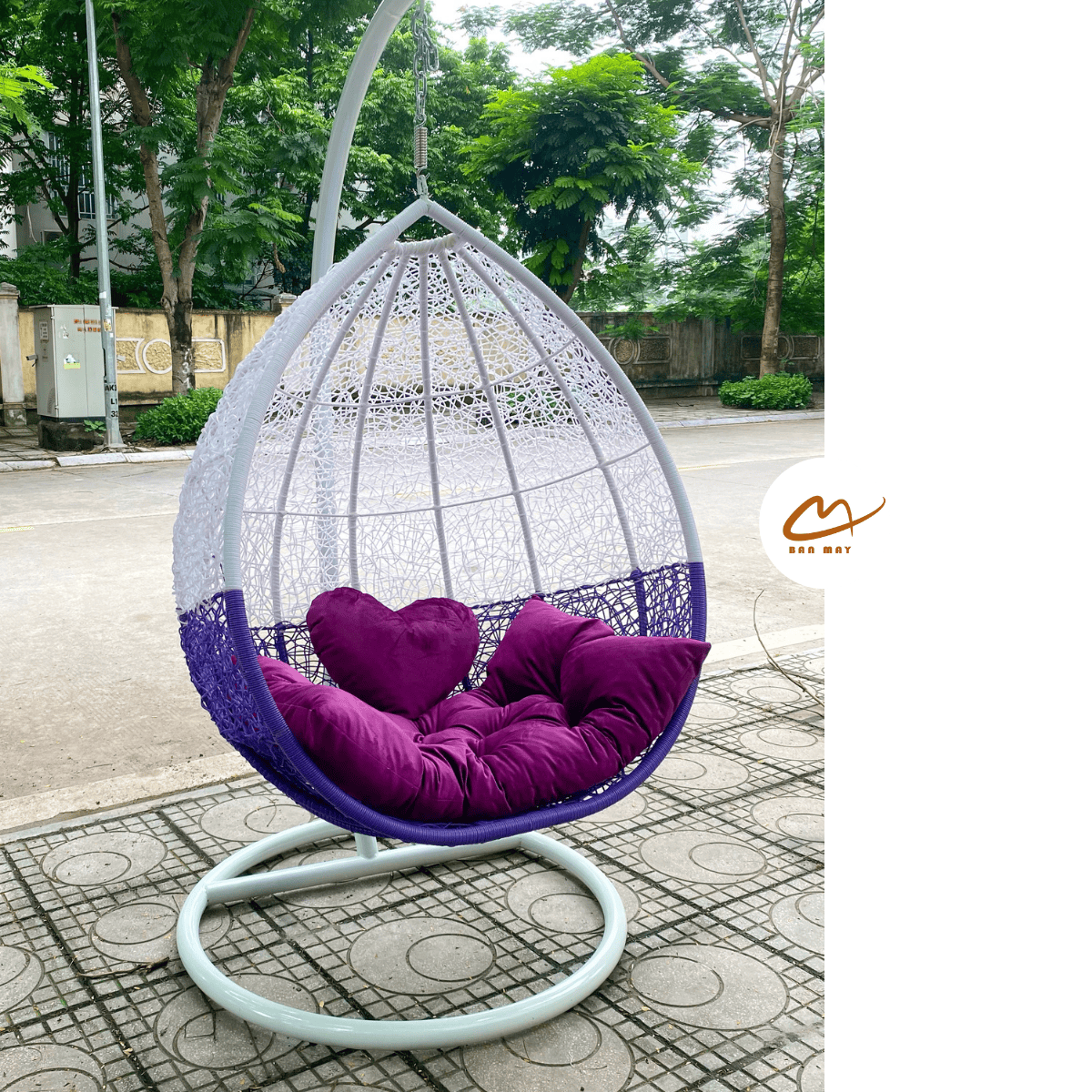 Khi ngồi vào, form giọt nước ôm trọn phần lưng và hai bên hông, tạo cảm giác bao bọc nhẹ. Kiểu đan rối dài làm giảm cảm giác “trống” phía sau, tăng độ riêng tư khi sử dụng. Sự kết hợp giữa phối màu hai tầng và form trứng mềm mại giúp mẫu xích đu thư giãn này phù hợp với: