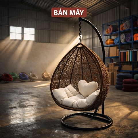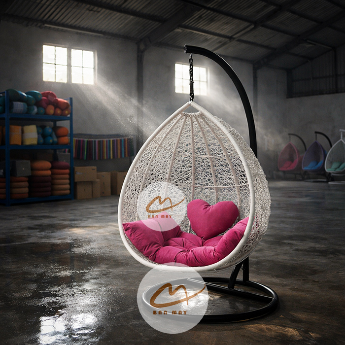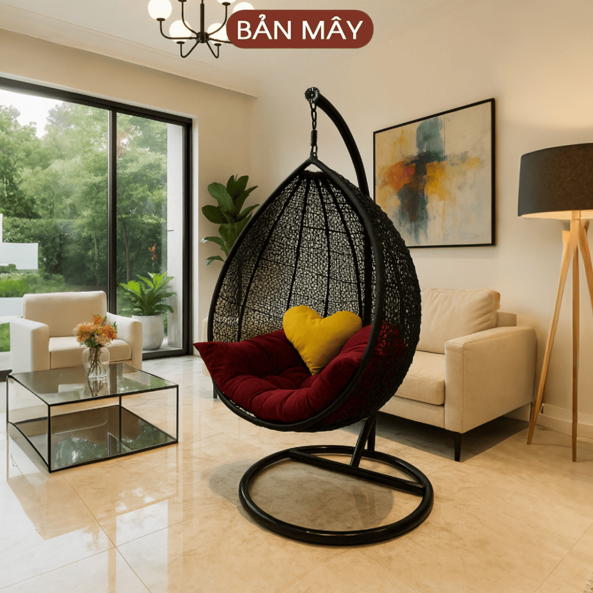 Mẫu xích đu giả mây dáng trứng đan rối dài là lựa chọn phù hợp cho những ai muốn tạo một góc nghỉ dưỡng ngay tại nhà. Với thiết kế mềm mại, kích thước gọn và khả năng chống chịu tốt ngoài trời, sản phẩm dễ dàng hòa vào không gian xanh mà vẫn giữ được điểm nhấn thẩm mỹ rõ rệt.