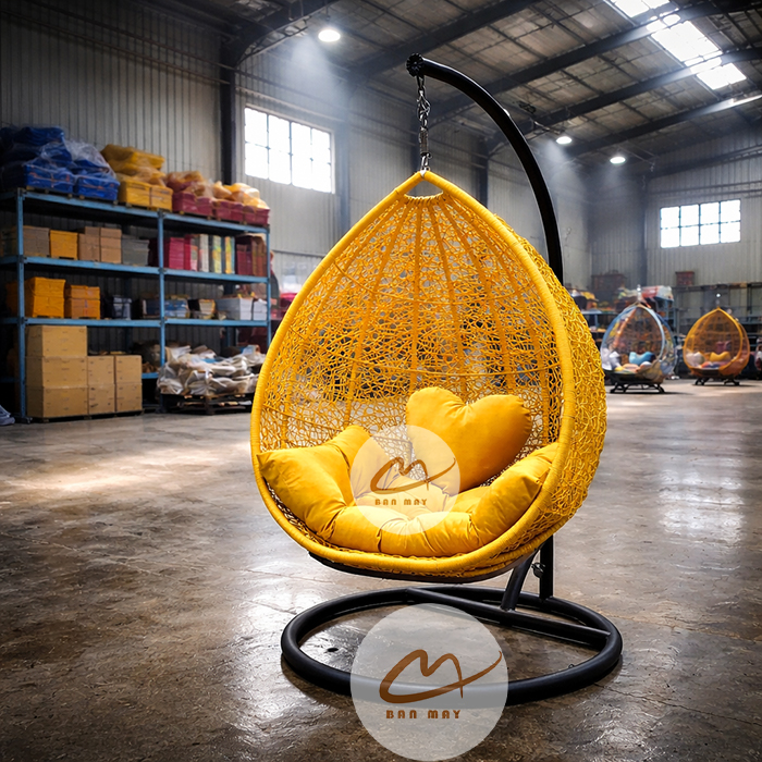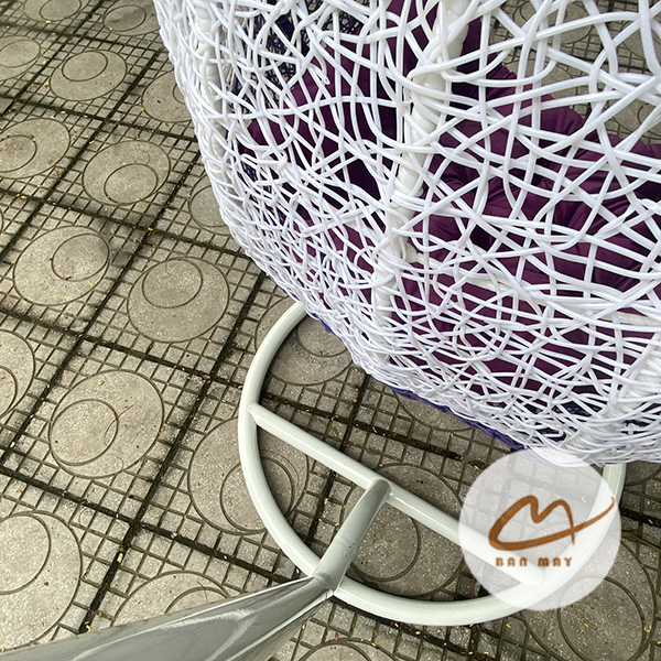 Lồng thép bên trong đảm bảo form trứng giữ ổn định theo thời gian, không méo mó khi chịu tải 200kg. So với các mẫu xích đu phượng hoàng đan song thẳng, kiểu rối dài mang lại phong cách mềm mại và tự nhiên hơn, đặc biệt phù hợp không gian sân vườn xanh mát.