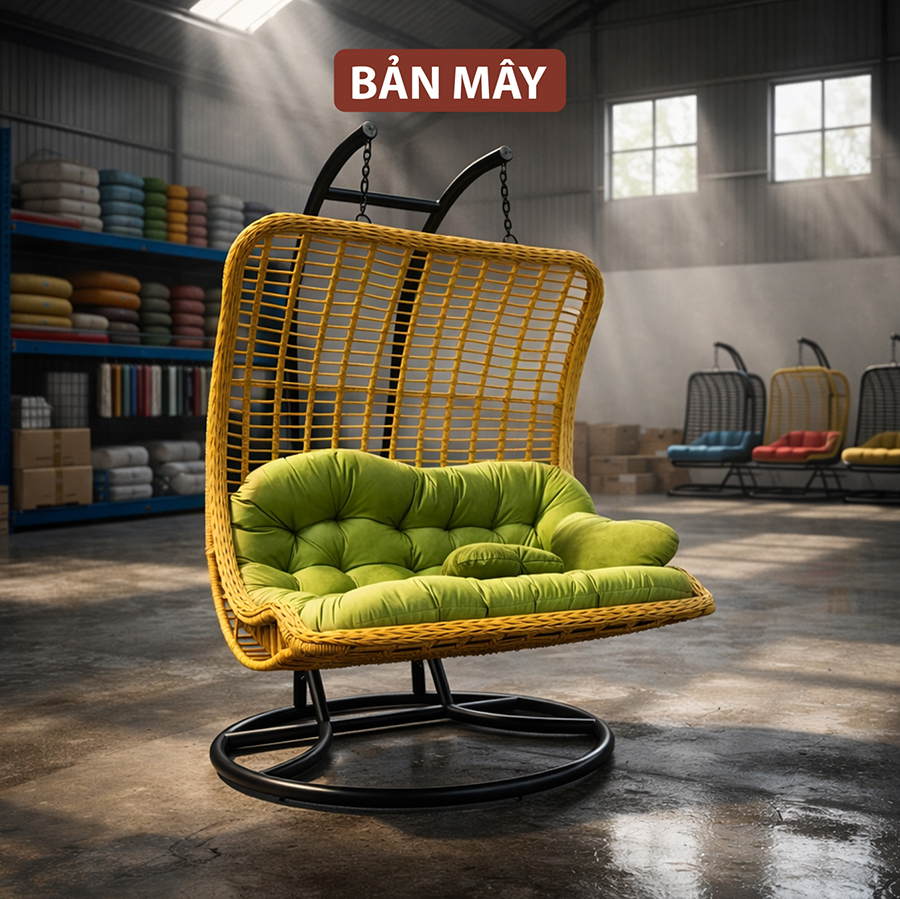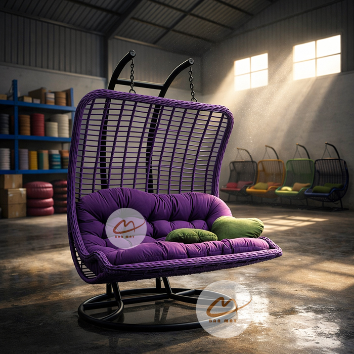 Xích đu đu thư giãn với dáng lưng vòm đôi không chỉ nổi bật bởi thiết kế độc đáo mà còn bởi khả năng chịu tải lớn cho 3 người. Đây là lựa chọn phù hợp cho không gian rộng muốn kết hợp giữa thẩm mỹ và công năng sử dụng lâu dài.