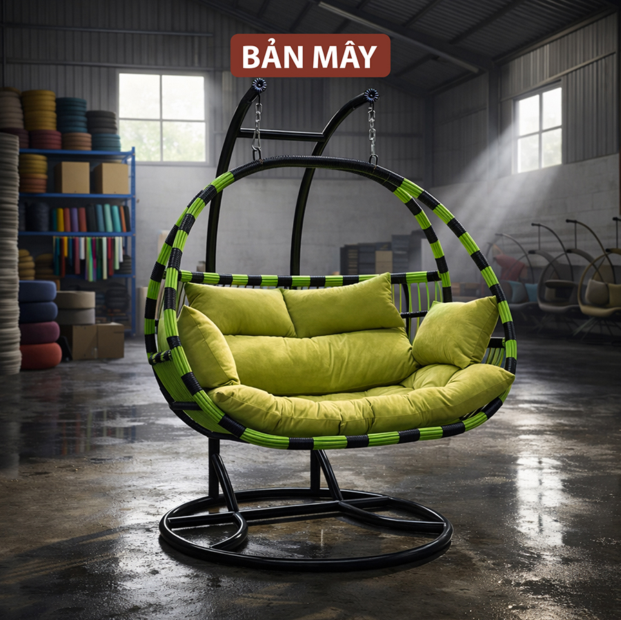 Combo sản phẩm đầy đủ gồm: đế chắc chắn, cần kép gia cường, lồng đan thủ công và bộ đệm gối cao cấp. Chúng tôi miễn phí vận chuyển toàn quốc và bảo hành 12 tháng cho mọi lỗi từ nhà sản xuất. Hãy để Bản Mây giúp bạn biến ban công hay sân vườn thành thiên đường nghỉ dưỡng ngay hôm nay! Liên hệ Zalo: 0328.136.875 hoặc 0813.479.354 để nhận tư vấn decor miễn phí.