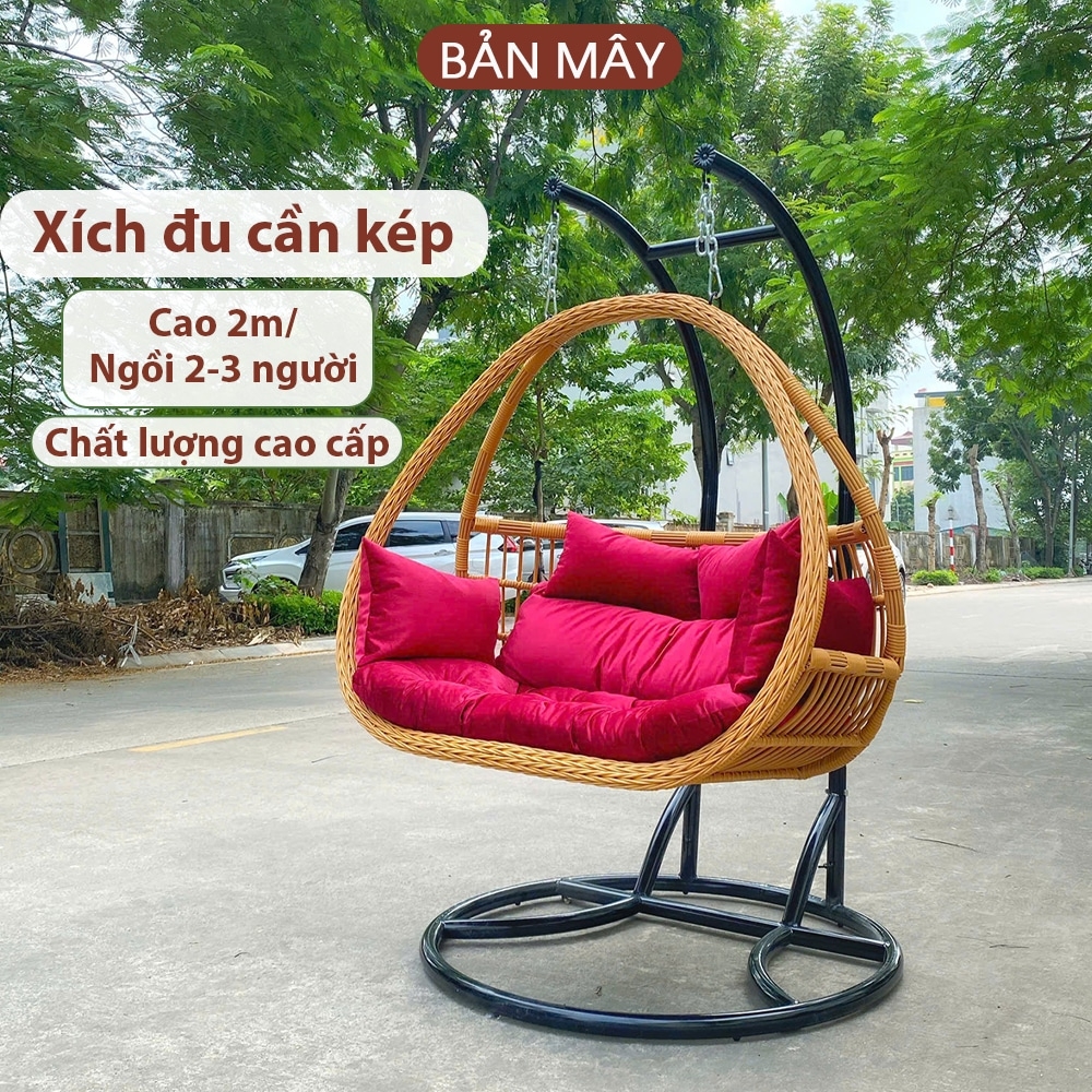 Xích đu phượng hoàng đôi Bản Mây thiết kế tinh tế, chịu lực hơn 400kg, phù hợp sân vườn, ban công, phòng khách.