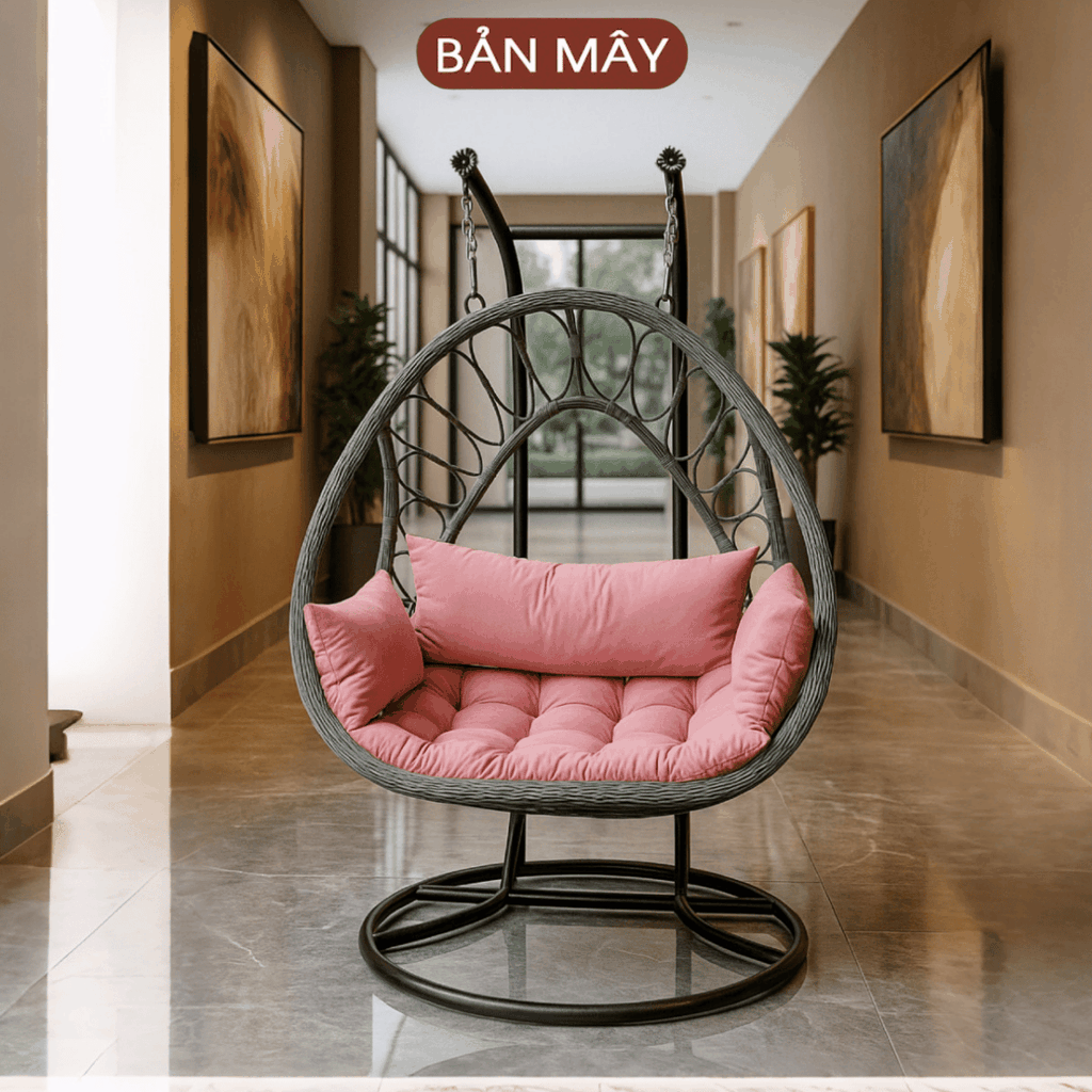 Hãy để xích đu oval đệm hồng trở thành điểm nhấn tinh tế cho ngôi nhà của bạn. Đừng bỏ lỡ cơ hội sở hữu sản phẩm vừa bền đẹp vừa mang giá trị thẩm mỹ cao. Đặt hàng ngay hôm nay qua hotline 0813.479.354 để tận hưởng cảm giác thư giãn tuyệt vời trong không gian của riêng mình
