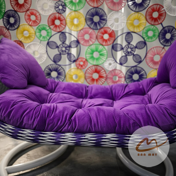 Khi nhiều màu sắc được phối hợp với nhau, chiếc xích đu tạo nên hiệu ứng thị giác sinh động và nổi bật. Đây là kiểu thiết kế thường được nhiều người lựa chọn khi muốn tạo điểm nhấn cho không gian. Nhờ họa tiết đặc trưng này, chiếc ghế xích đu cần kép rất phù hợp với các không gian như: