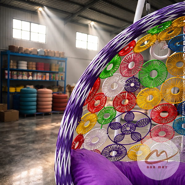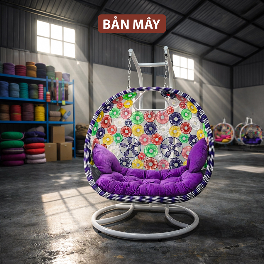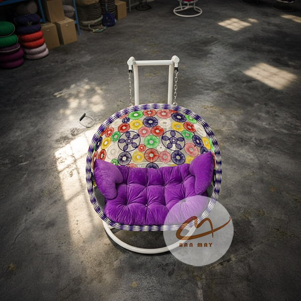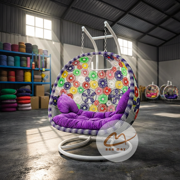 Trong các sản phẩm nội thất mây nhựa, kỹ thuật đan tay luôn là yếu tố tạo nên giá trị khác biệt. Một chiếc ghế có thể được sản xuất bằng nhiều loại vật liệu khác nhau, nhưng chính cách đan thủ công mới tạo nên vẻ đẹp riêng cho từng sản phẩm. Mẫu xích đu mây nhựa cần kép đan hoa cúc nhiều màu là một thiết kế nổi bật theo hướng đó. Sự kết hợp giữa khung thép chắc chắn và kỹ thuật đan mây thủ công đã tạo nên một chiếc xích đu vừa bền chắc vừa mang tính thẩm mỹ cao.