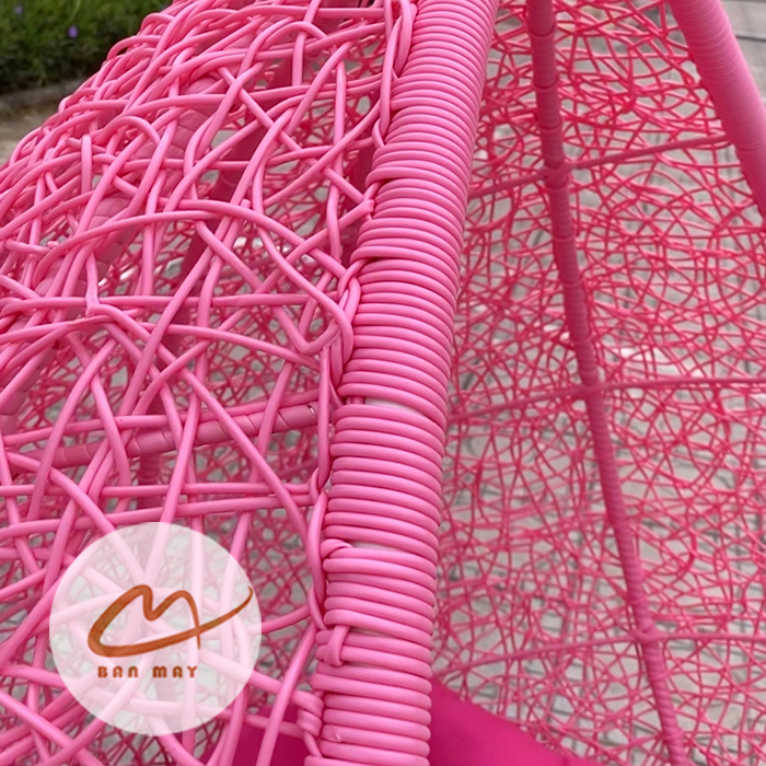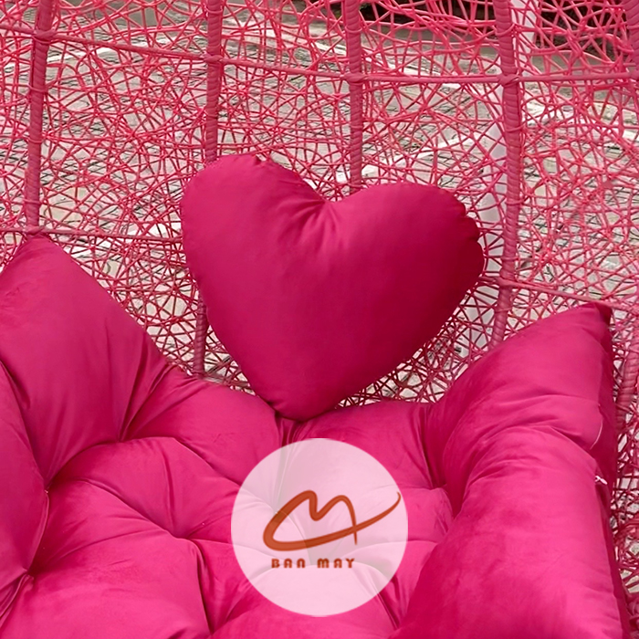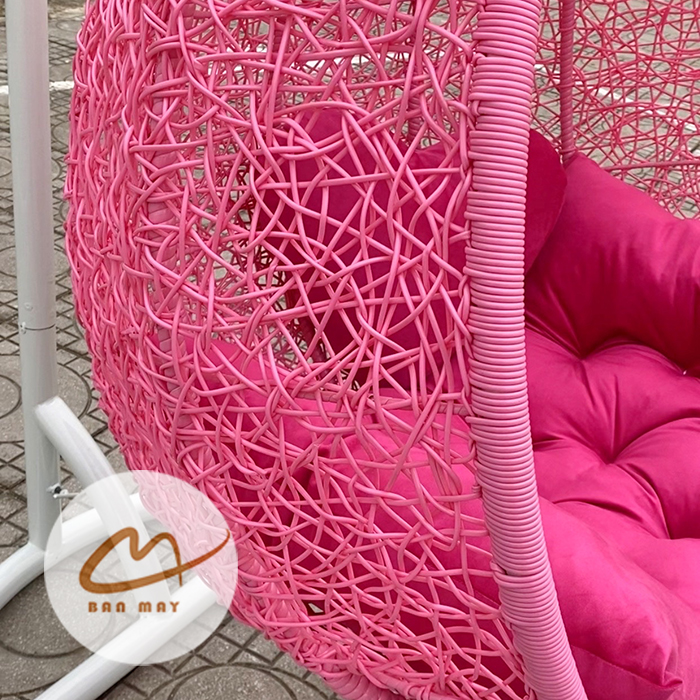 Đệm nhung cao cấp 2 lớp nhồi 100% bông hạt trắng giúp phân bổ lực ngồi đều, hạn chế xẹp lún. Bề mặt nhung mềm tạo tương phản thú vị với bề mặt đan rối phía sau. Đế vòng tròn bản rộng giữ trọng tâm ổn định, đảm bảo chuyển động mượt mà mà không rung lắc mạnh. Nhờ kết hợp giữa khung chắc chắn và đan nhiều lớp, mẫu xích đu sân vườn này vừa mang tính trang trí vừa đáp ứng công năng sử dụng lâu dài.
