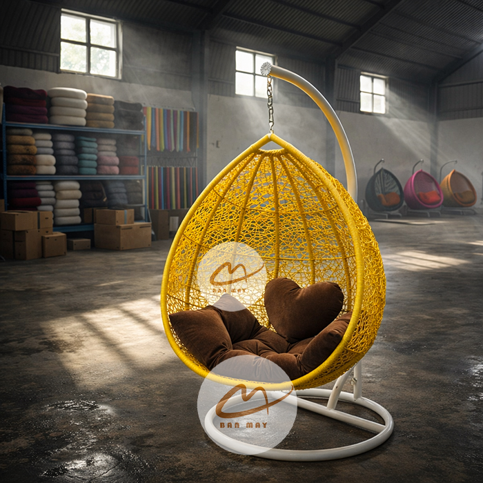 Đan rối dài không tạo ra sự lặp lại máy móc. Mỗi sản phẩm có độ “ngẫu nhiên có kiểm soát”, làm tăng tính cá nhân hóa cho từng chiếc xích đu ngoài trời.
