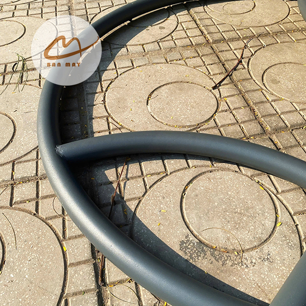 Khung kép cao 2m tạo chiều cao thị giác, giúp sản phẩm cân đối trong không gian trần từ 2m7 trở lên. Tông xám của khung thép sơn tĩnh điện nhiều lớp mang lại cảm giác hiện đại, dễ phối với sàn gỗ, đá hoặc gạch trung tính. Lồng thép đan nhựa nguyên sinh giả mây màu xám đồng bộ giúp tổng thể hài hòa. Kỹ thuật đan song mây kết hợp viền vảy rồng tạo đường nét nổi bật mà không quá rối mắt.