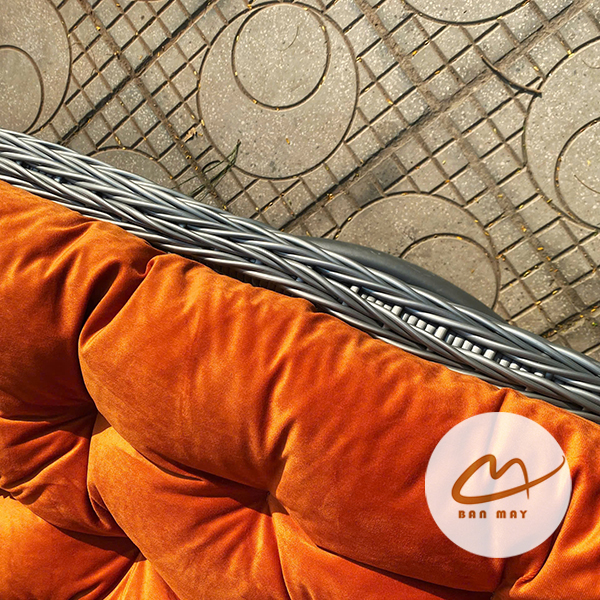 Đệm cao cấp 2 lớp nhồi 100% bông hạt trắng giúp giữ độ đàn hồi ổn định. Khi ba người cùng ngồi, bề mặt vẫn giữ form mà không bị lún sâu. Màu cam tạo cảm giác ấm áp, nổi bật trên nền xám, phù hợp với không gian phòng khách hiện đại hoặc phong cách tối giản cần một điểm nhấn màu sắc.